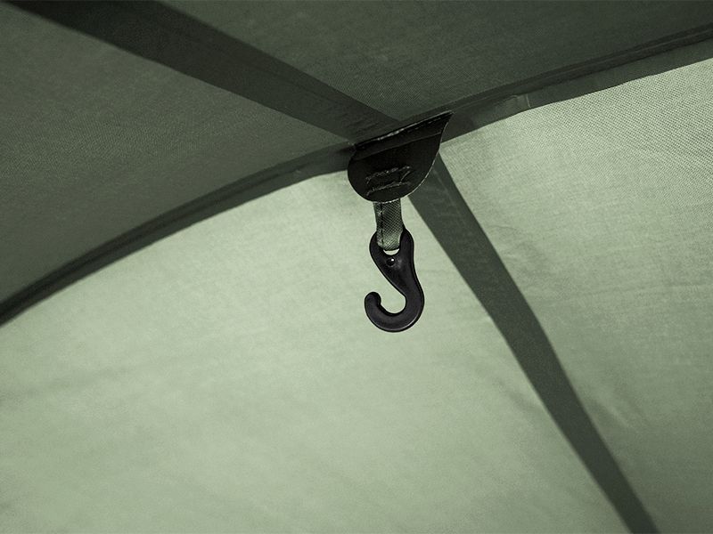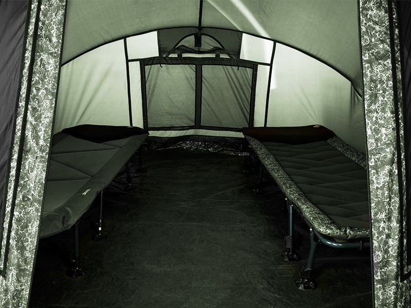 Vďaka rozmerom bivaku sa doňho bez problémov vôjdu 2 lehátka, pričom stále ostane vo vnútri veľkorysý priestor na pohyb, ale taktiež na tašky a ďalšie komponenty výbavy potrebnej pre pohodlný pobyt pri vode. V prípade potreby pojme vnútorný priestor dokonca až 3 lehátka. Samozrejmosťou sú tiež dva úchyty na zafixovanie prútov, ale taktiež veľký šilt, ktorý poskytuje ochranu pred slnkom či dažďom. Vo vnútri sú na strope bivaku navyše umiestnené 2 háčiky, na ktoré je možné zavesiť napríklad lampu.