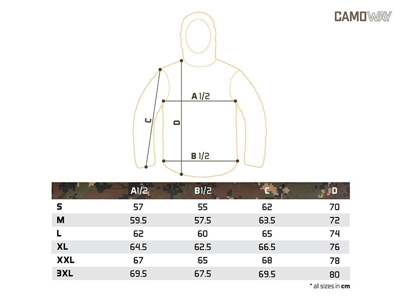 Bunda CamoWAY disponuje taktiež kapucňou, ktorú je možné zatiahnuť pomocou sťahovacieho klipu. Rukávy sú na koncoch mierne zúžené a opatrené jemnou gumičkou, pre lepšie obopnutie zápästia.