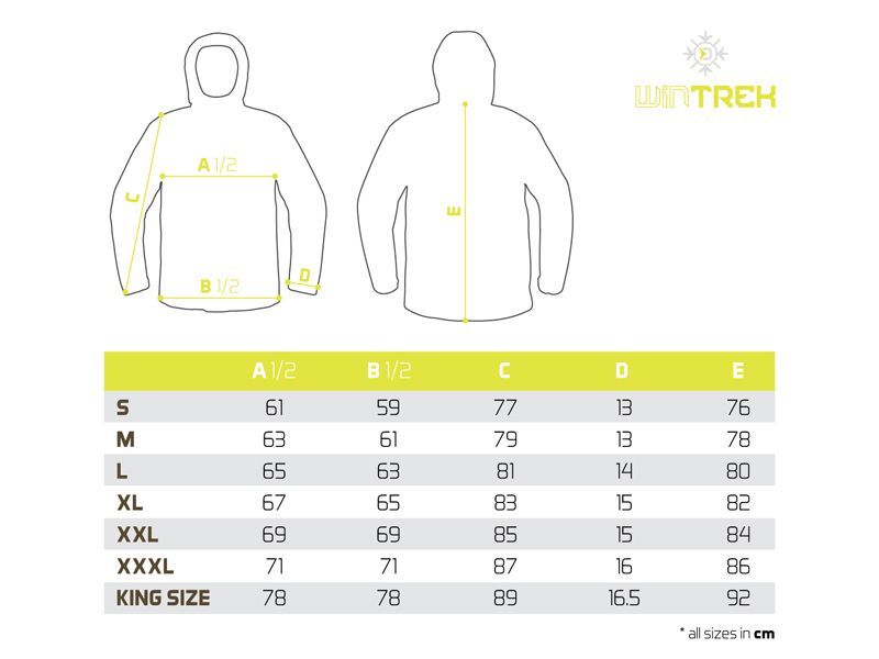 WinTREK disponuje vreckami na zips po obidvoch stranách, pričom zipsy sú prešité výraznou žltou textíliou a prekryté lemom z vodoodolnej tkaniny. Na páse sa nachádzajú dva žlté gumené popruhy určené na utiahnutie v spodnej časti. Vnútorná strana je tvorená hladkou prešívanou látkou, vďaka ktorej sa bunda ľahko oblieka a komfortne sa nosí.