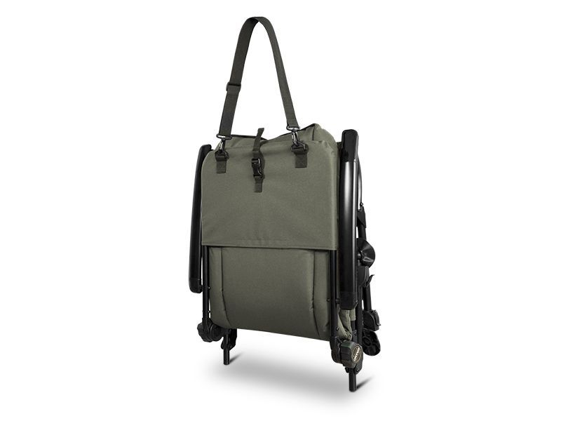 Robustná zváraná oceľová konštrukcia zaisťuje pevnosť a šikmý rozostup nožičiek zabezpečuje vysokú stabilitu, čo ocenia najmä objemnejší kaprári. Aj napriek svojej pevnej konštrukcií je kreslo pomerne ľahké. Na jednoduchý transport sme kreslo vybavili odopínateľným popruhom, ktoré si je možné prehodiť cez rameno a tým uvoľňuje ruky na prenos ostatného rybárskeho vybavenia. Rovnako tak je kreslo vybavené plastovým klipom, ktorý slúži na fixáciu polohy kresla počas prenosu a predchádza nežiadúcemu otváraniu.