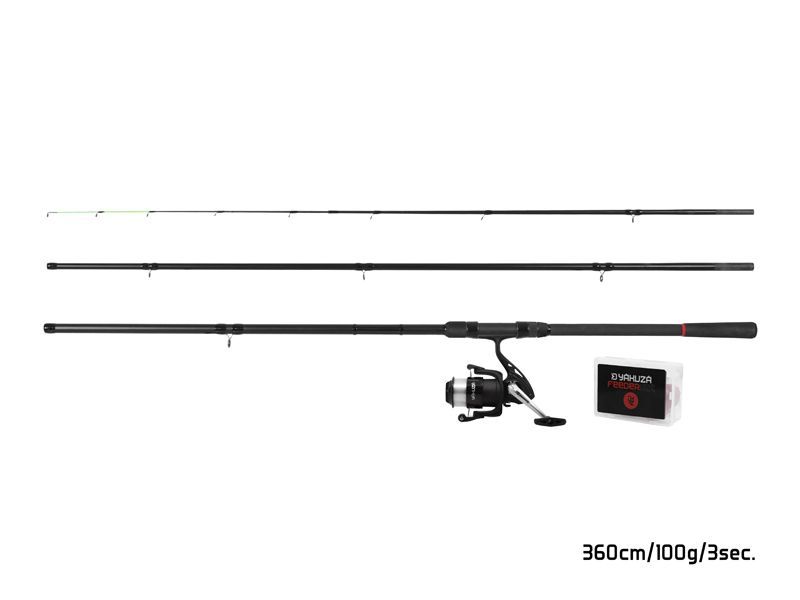 Základom je feedrový prút YAKUZA s parabolickou akciou, ktorá vám dokonale umožní vychutnať si zdolávanie aj tých najmenších rýb. Prút má samozrejme dostatočnú silovú rezervu nato, aby si poradil aj s väčšími úlovkami, či častým nahadzovaním na lovné miesto.