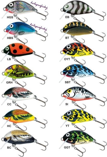Wobler SALMO TINY, dĺžka 3 cm, váha 2,0 g ,plávajúci, hĺbka ponoru 0,3/0,5 m, wobler imitujúci hmyz, zavalitého tvaru s dvoma háčikmi číslo 14.