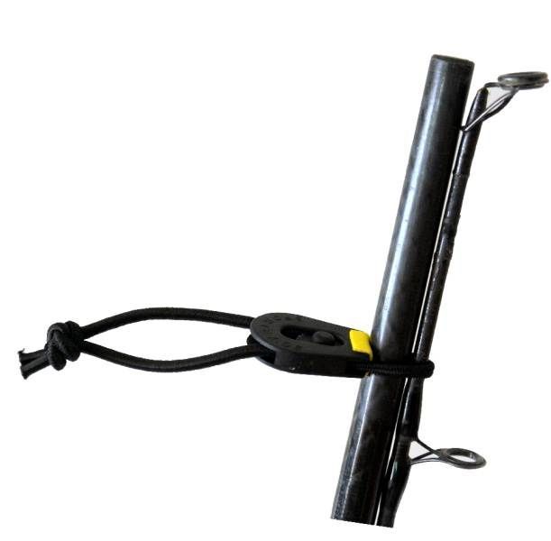 Pomôcka na prenášanie delených prútov pomocou sťahovacej gumičky s pevnou poistkou. Nenahraditeľná pomôcka pre transport delených prútov. Dva ks v balení