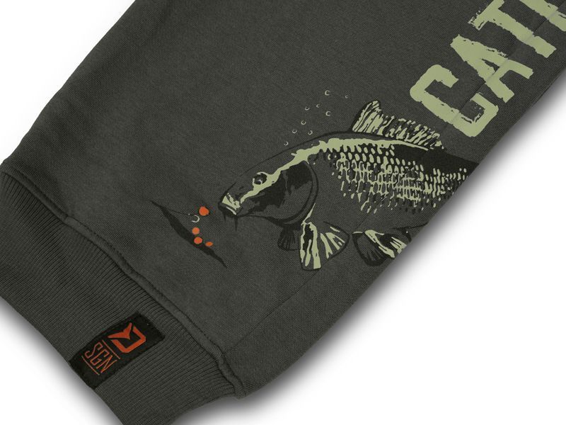 Tepláky Catch me CARP NX sú doplnené na ľavom boku efektnou grafikou s nápisom CATCH ME IF YOU CAN a kaprom nasávajúcim potravu z dna. V kombinácií s rovnomennou mikinou a tričkom dostanete štýlový outfit, v ktorom sa pri vode budete cítiť maximálne pohodlne.