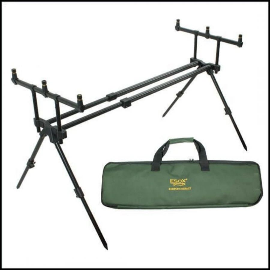 Rod pod má 4 teleskopické nohy, ktorým nerobí problém ani nerovný terén, 2 stredové tyče so štvorcovým profilom a pevné kotviace prvky z pevného plastu. Všetky teleskopické časti majú zarážky proti úplnému vysunutiu. Hrazda stojanu je široká 44 cm a je optimalizovaná na 3 prúty. Závity sú normované a majú kontramaticu, ktorá uľahčí vycentrovanie signalizátora na stojane. Rod pod sa dodáva v pevnej, polstrovanej taške na zips.