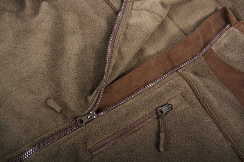 Rybárska mikina so zipsom SPORTS je vyrobená zo 100% polyesteru. Veľmi dobre drží teplo a je príjemná na dotyk. Zvýšený golier chráni krk pred chladom a vetrom. Mikina je kombinovaná s imitáciou hnedého semišu na ramenách, lakťoch a bočných vreckách s vysokou oteru odolnosťou. Fleesový materiál je s funkciou anti peeling, čo znamená že sa nežmolí a nestráca vlákna. Vačky sú osadené kvalitným a odolným zipsom, ktorý sa jednoducho otvára smerom dolu. Rybárska mikina so zipsom SPORTS je mierne vode odolná, takže pri jemnom mrholení alebo snežení ostanete v teple a suchu. Dostupné veľkosti (M,L,XL,XXL).