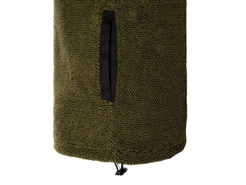 Praktický predný zips na golieri uľahčuje obliekanie a zároveň umožňuje regulovať teplotu podľa potreby. Na spodnom leme sa po celom obvode nachádza sťahovacia gumička s dvojicou zarážok, vďaka ktorej možno prispôsobiť šírku mikiny a minimalizovať únik tepla. Dve priestranné bočné vrecká poslúžia na úschovu drobností alebo na zahriatie rúk počas chladných dní.